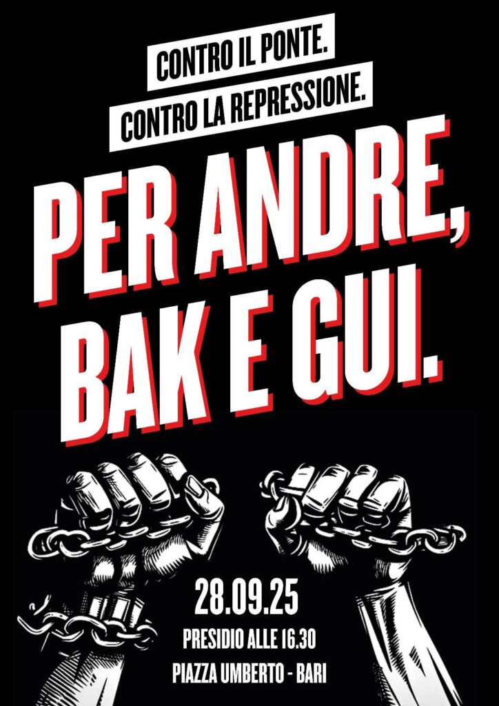 Speciale Ghigliottina a più teste – uno spottino per il presidio a Bari in solidarietà ad Andre, Bak e Gui. Fai girare! – SPOTTINO